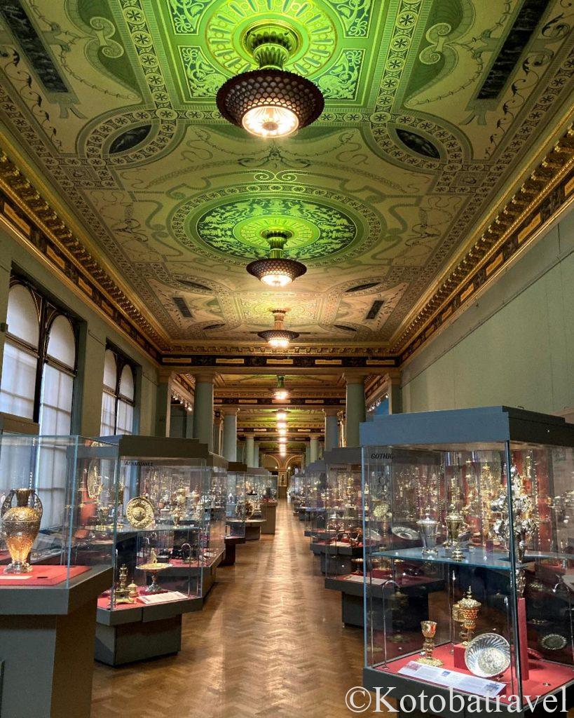 イギリス国民のセンスの向上を図るために設立された博物館というだけあって、デザインに関する展示品が多いことが特徴です。家具、衣装、宝石、陶磁器、金属製品、ガラス等のデザインに興味がある方でしたら、1日中滞在していられるほど展示が充実しています。